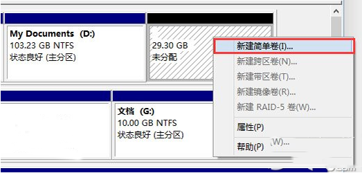 3.在未分配空间上右键单击,选择“新建简单卷”,再出现的窗口中一路点击“下一步”即可。注意,如果提示你需要将硬盘转换为动态磁盘,那是因为你的硬盘是MBR分区结构,主分区数量已经超过了该分区类型的最大限制——4个,此时请放弃分区操作。