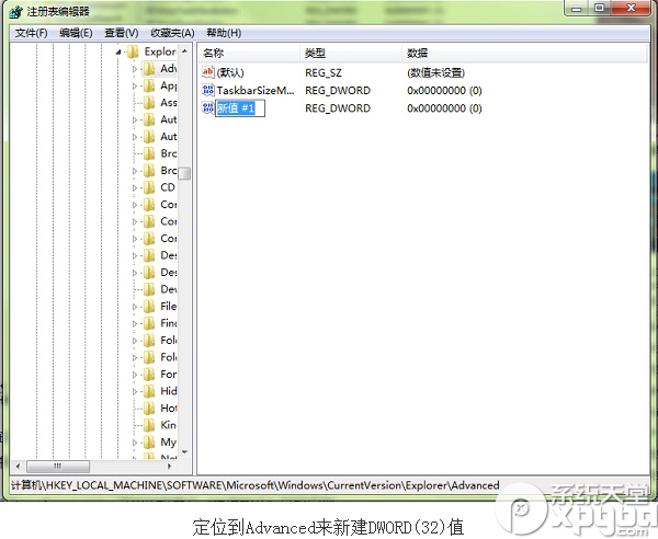 2.定位到HKEY_CURRENT_USERSoftwareMicrosoftWindowsCurrentVersionExplorerAdvanced