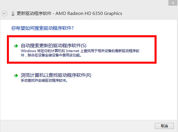5.在更新驱动程序软件窗口中,点击“自动搜索更新的驱动程序软件”开始搜索驱动程序软件,搜索到之后点击进行更新即可。如下图所示