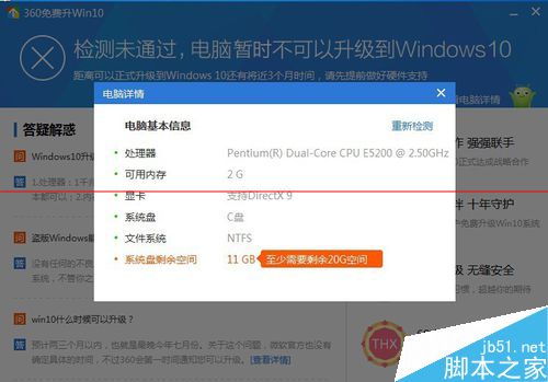 360卫士升级windows 10 系统下载遇到c盘剩余空间不足该怎么办?为了检验自己能否免费升级windows 10 ,我下载了一个“360免费升windows 10 ”检测工具,检测后果然自己的电脑系统盘剩余空间不足,下面分享解决办法