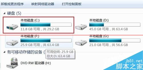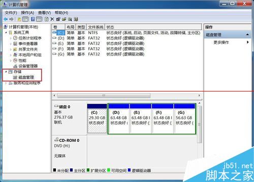 3、在这里可以看到各个分区的总容量,在桌面通过双击“计算机”可以获得各个分区的使用状况,以及剩余的空间,然后再决定对那个分区进行压缩,最后释放给C盘系统盘。