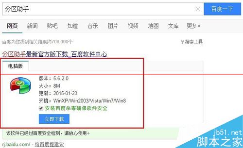 百度搜索“分区助手”,在第一项点击下载并安装。