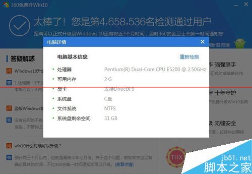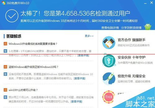 10、再用“360免费升windows 10 ”工具检测一下,完全通过了。