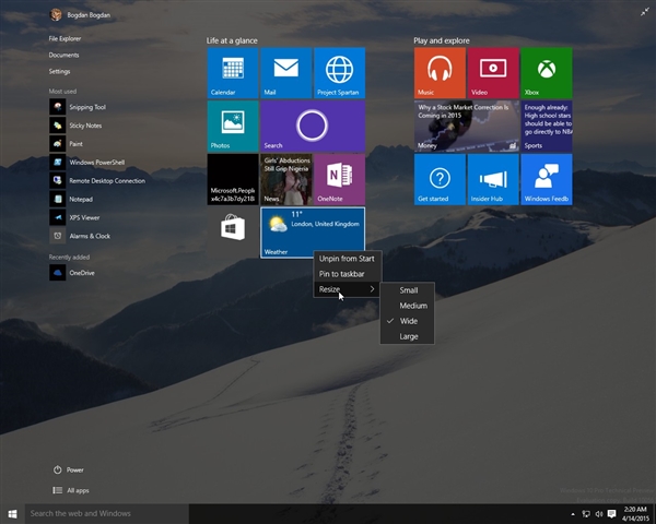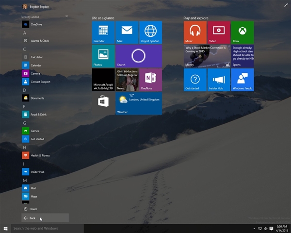 开始菜单的效果是最好的,只不过透明度基本上看不出来了。开始屏幕的透明度更大,动态磁贴、快捷方式更容易看清了。