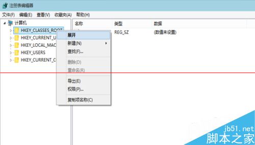 3、在注册表编辑器上找到“HKEY_CLASSES_ROOT”,然后右键菜单展开:
