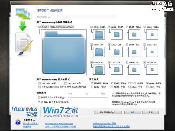 打开IconWorkshop,导入你准备的图标,分别查RGB/A 256色 16色,先看比原图标多余的项,