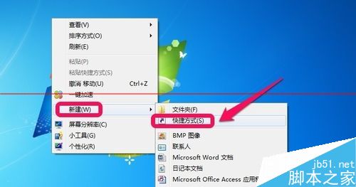 1、我们在系统的桌面上单击鼠标右键,然后选择新建中的快捷方式!