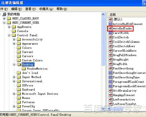 4、在右边找到“AutoEndTasks”双击: