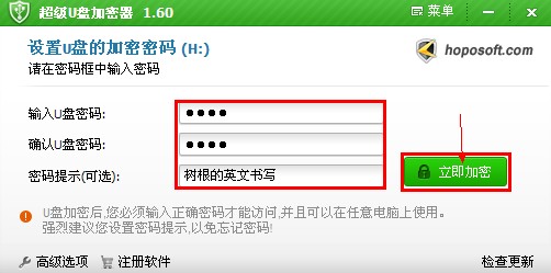 以上就是用U盘加密器为U盘加密的方法,跟普通的软件下载安装过程相类似,只要打开U盘加密器后,输入密码,并立即加密,U盘就轻松加密了。该方法相对简单,只要U盘在未解除密码情况下,不能对特定文件做任何操作。