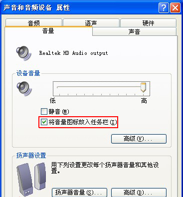 任务栏右下角没小喇叭(音量控制图标)解决方法:依次进入“开始”菜单 - “设置” - “控制面板” - “声音和音频设备”,打开“声音和音频设备 属性”的对话框,如下图所示: