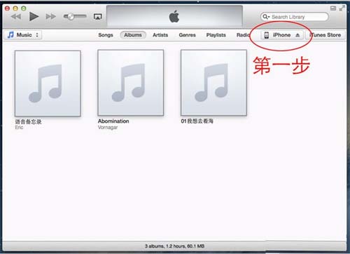二、然后将手机接上电脑(本例截屏是苹果机,PC没什么区别),开启iTunes,然后点击iPhone。