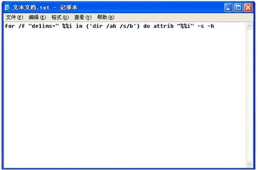 for /f "delims=" %%i in ('dir /ah /s/b') do attrib "%%i" -s -h保存重命名为 文件名.bat(文件名自行定义),把该文件拷贝到U盘根目录,运行该文件。之后U盘中隐藏的文件就都出现了。
