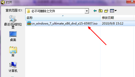 2、然后将在网上下载一个win7的镜像文件,下载完成之后将它放在资源管理器中;