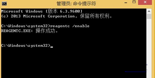 2、在出现命令提示符窗口后,执行:Reagentc /enable 命令。