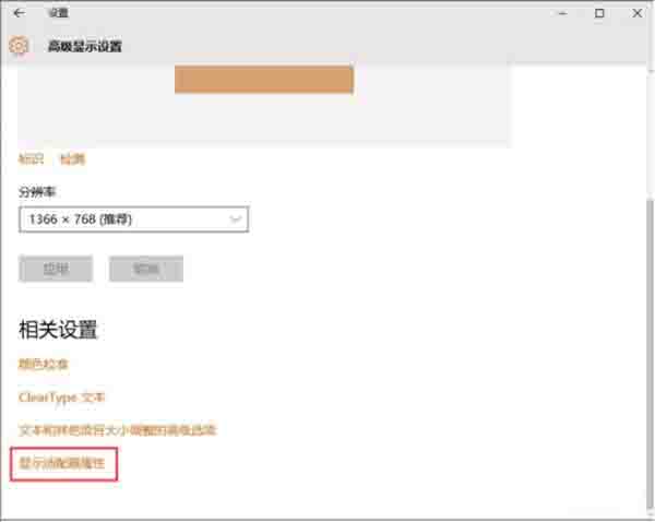 4。单击“高级显示设置”功能选项,进入高级显示设置界面,下拉该界面,找到“显示适配器属性”功能选项;如图所示: