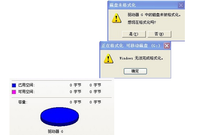 日常时候我们在使用U盘的过程中,都会经常出现这样的问题。插入U盘点击时,会提示你的磁盘未被格式化,问是否进行格式化。当你确定要格式化了,又提醒你windows无法完成格式化。右击U盘选择属性,你会发现可用空间和已用空间都显示的是0字节。这该怎么办呢?下面,就跟随小编一起来看看U盘出现0字节的解决方法吧。