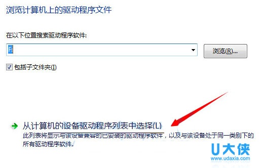 3、弹出页面里选择“从计算机的设备驱动列表中选择”