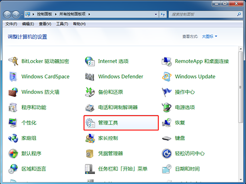 2、在控制面板中,找到并点击“管理工具”