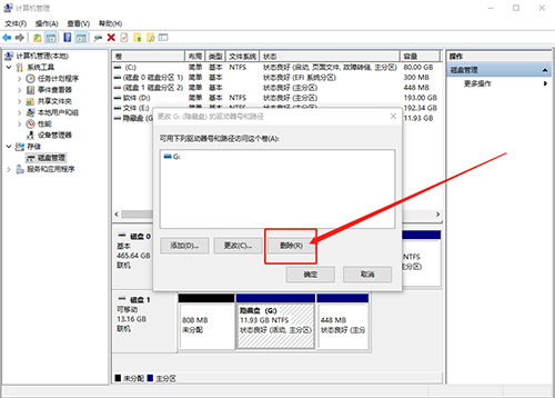 6、随后在弹出的页面中,点击“删除”,并确认删除,点击“是”即可隐藏磁盘