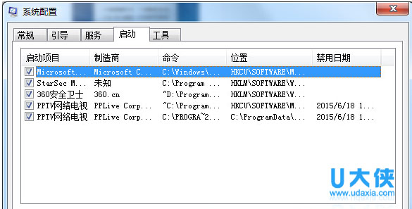 2、在打开的设置窗口中点击进入启动选项标签,然后里面的选项都禁用这些启动项目;