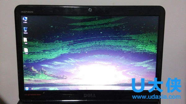 三、屏线屏蔽不好引起的花屏:从LOGO就开始抖,到桌面后屏幕背景有断断续续的横亮线闪动。