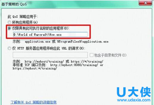 点击“仅限具有此可执行名称的应用程序”项,在下面输入框内,输入你的游戏完整的安装路径,再点击“下一步”,选择默认即可最后点击完成,重启计算机,即可运行游戏查看效果。