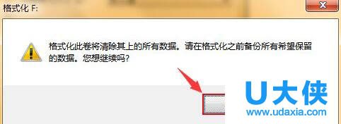 3、在弹出的格式化参数设置中点击“确定”按钮。