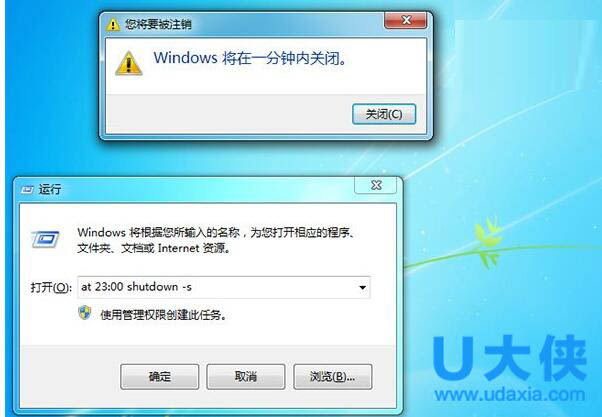 假设我们设置系统在晚上11点关闭,按下“Windows徽标键+R”,在弹出的“运行”窗口中输入“at 23:00 shutdown -s”,按下回车键即可。在系统关闭前一分钟,会弹出提醒窗口。注意:上述命令包含3个空格,不含引号。在命令符窗口输入命令也会达到相同效果。使用此命令时,计划服务必须在运行中。