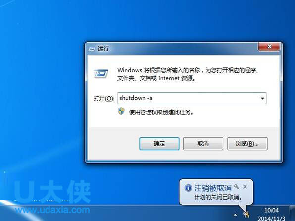 阻止系统关闭,我们要用到“shutdown”命令的另一个参数“-a”。打开“运行”窗口,运行“shutdown -a”命令(含一个空格,不含引号)即可。