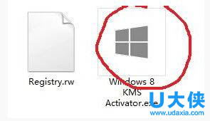 2、下载打开软件,软件 Windows8_KMS_Activator下载地址在下面的参考资料中有。里面有两个文件,其中一个是应用程序。