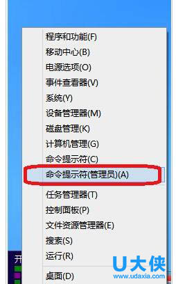1、首先将鼠标移到桌面左下角,单击右键,在弹出的快捷菜单中找到“命令提示符(管理员)”,点击。
