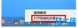 3、在桌面右下角找到网络图标,单击右键,“打开网络和共享中心”。