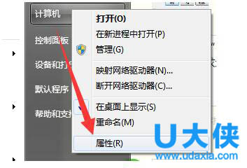 4、右击“计算机”图标,从其右键菜单中选择“属性”项。