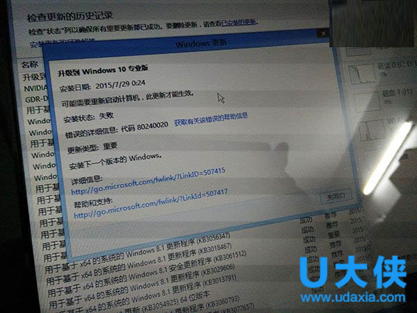 3、80240020,升级安装失败。很多用户遇到此问题,此时可尝试重新下载和安装。