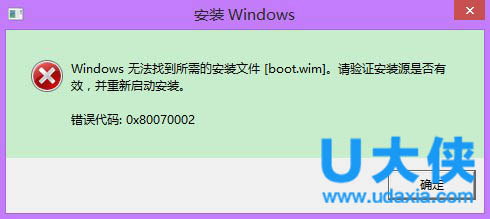 4、80070002,尝试用Win10升级包手动安装时遇到的错误。原因是升级包内并无boot.wim文件,无法用传统点击setup.exe的方式安装。