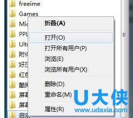 6、右键启动这个文件夹之后,选择打开选项,如图所示: