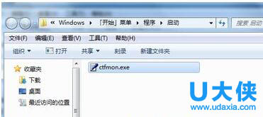5、之后我们在桌面可以看到多了一个名为Ctfmon.exe的快捷方式,我们将其剪切,然后打开开始菜单程序里面的启动文件夹,将其粘贴进去,如图所示: