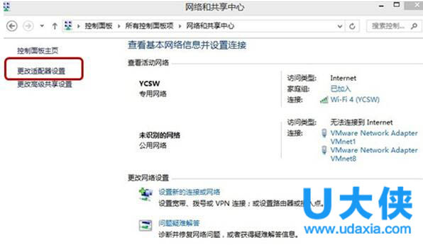 第二步,选择左边的“更改适配器设置”选项并双击。