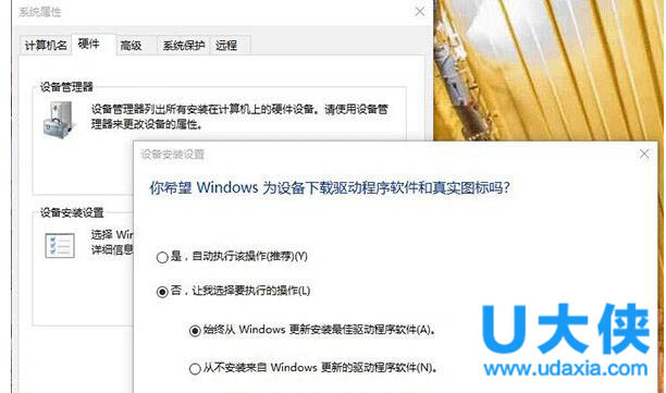 4.将默认为“是”的选项改为“否”,并选择“从不安装来自Windows的驱动”,然后确认保存即可。