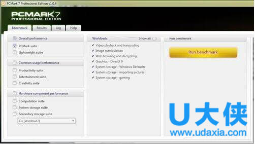 注:测试项选择的是默认的“PCMARK suite”。