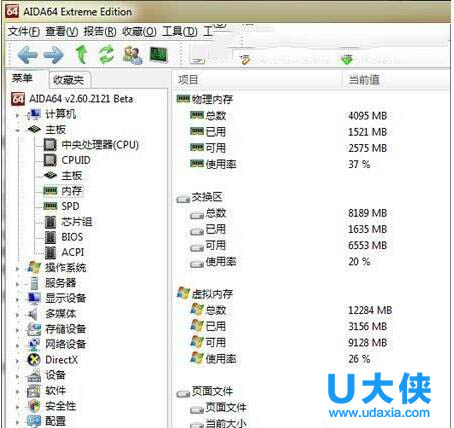 要回答这个问题其实也很简单,只要借助一款第三方软件——AIDA64就可以了。上图是硬件检测软件AIDA64对笔者电脑的检测,可以看到当前电脑的 存储系统是由4GB物理内存、4GB分页文件共同组成,其中物理内存+分页文件的总和被AIDA64称作交换区(Windows称“虚拟内存”)。那么当 一款程序启动时,它究竟会首先使用物理内存?还是按照整个虚拟内存的概念同步使用呢?