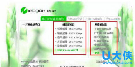 一、进入iebook超级精灵电子杂志软件界面后,iebook提供了多种组件风格供大家选择,如果都不如意,大家还选择可以“自定义尺寸”如下图: