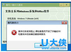 第三步:关闭杀毒软件后点击(一键永久激活Windows和office)这个按钮进行激活,暴风激活工具开始进行系统或Office软件的激活!请各位用户耐心等待几秒钟时间!