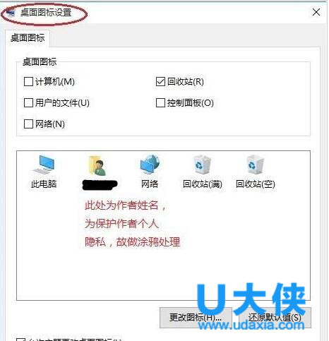 5、点击后,弹出桌面图标设置对话框,这里可以看到此电脑。