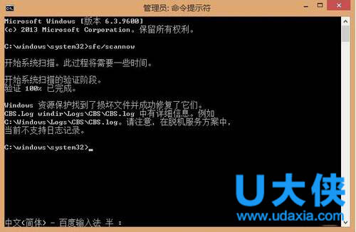 Win8使用扫描修复系统文件命令SFC/Scannow方法