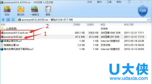 2、下载的“powerpcb”压缩包里有两个压缩包,分别解压出来,接下来会先用到第一个红色箭头标注的压缩包。