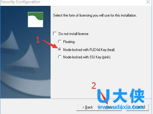 4、依提示点击“next”,然后选择“Node-locked with FLEXid Key(teal)”选项;要求license时暂且用Crack目录下的pcblic.dat代替。