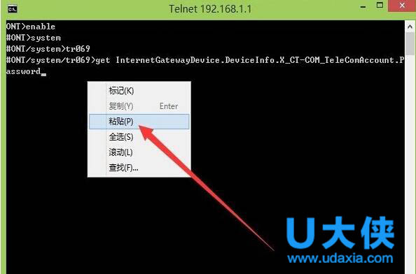 5、好了,现在出现的是命令窗口了,你直接输入:telnet 192.168.1.1,然后回车。