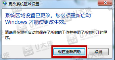 8、在弹出的提示框中选择“现在重新启动”,重新启动电脑;