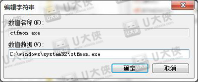 4、双击打开ctfmon.exe 值,将其数值数据修改为:C:windowssystem32ctfmon.exe 点击确定即可,如图所示: